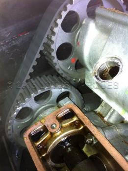 However, when the camshaft timing pulleys are viewed from the front of the engine the markings are as follows -