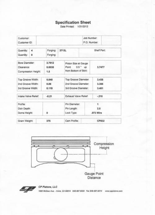 Before assembling any Lotus Esprit engine it is necessary to determine the correct piston to bore clearance. This information is usually provided by the piston manufacturer - see below