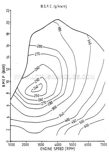 It must be remembered when comparing this figure with other engines that the geometric compression ratio is 8.0:1, and that it has been achieved with a valve overlap of 42 degrees.