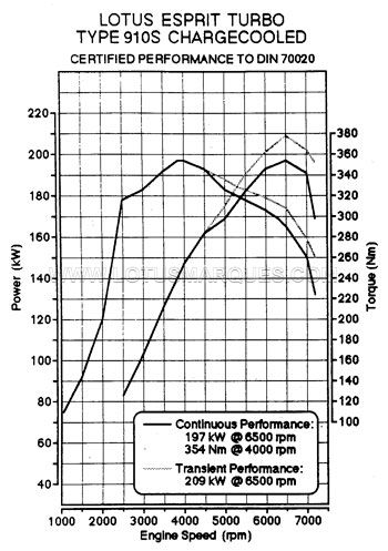 6.1 ENGINE PERFORMANCE - The certified performance, to DIN70020, of 197 kw (264 bhp) is, to our knowledge, both the highest performance four-cylinder engine and the highest specific performance output of any engine meeting Federal and European emission legislation. Peak torque is achieved at the relatively low speed of 4000 rpm, with power peaking 900 rpm before maximum engine rpm at 6500 rpm.