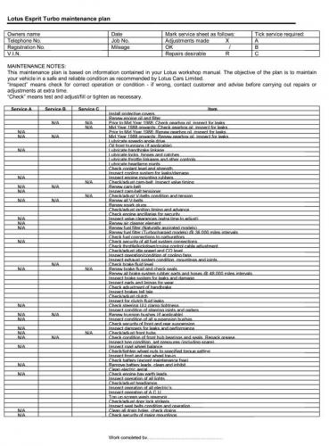 You are here: Useful Info Technical Info Lotus Esprit Lotus Esprit Turbo maintenance plan