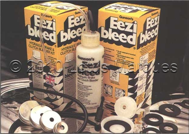 The EEZIBLEED kit consists of a plastic pressure vessel to hold the fresh hydraulic fluid. There is a length flexible tube that connects to the pressure vessel and delivers fresh fluid to the reservoir via a modified cap. In addition to this, there is a length of flexible tube that provides the necessary connection from the pressure vessel to an inflated tyre. Once both pipes are connected, all that is necessary is to operate each bleed valve in turn until the clean fluid appears. Less than 1/41b of pressure from the tyre is required to complete the task which can be achieved in a very short period of time.